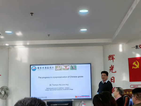 胡团军研究员从中国鹅的冷冻保存技术进展、基因编辑鹅PGCs、水禽生殖干细胞育种、鸭血PGC培养等方面系统阐述了水禽PGC冷冻保种所面临的机遇和挑战,报告结束后,胡团军研究员与在场参加会议的专家学者和研究生进行了学术的深入交流和讨论,现场气氛热烈,思想碰撞,激发了与会者的研究热情和学术思考。