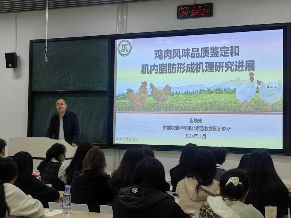 据悉,当天上午,崔焕先研究员还为我院2024级研究生和和中国现代农业联合研究生院食品营养与健康学部畜牧学科研究生上课,讲授《肉鸡遗传育种技术研究进展》,授课内容丰富且有条理,注重互动与反馈,听课学生纷纷表示获益良多。