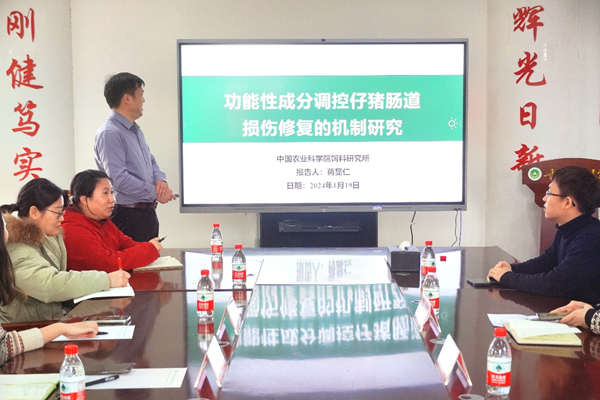 报告之后,我院师生与蒋老师进行了学术讨论,受益匪浅。最后,蒋瑞瑞教授对研究员蒋显仁带来的精彩报告表示衷心感谢。此次学术交流为有效缓解仔猪断奶应激引发肠道损伤,实现减抗限锌提供了新思路,有效助力我国生猪产业高质量发展,也为加强双方未来深入合作奠定了良好的基础。