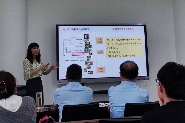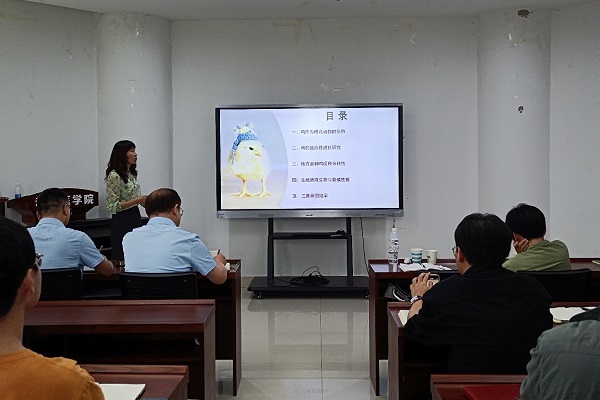 本网讯(通讯员 职毅豪)6月3日下午,我院在第一实验楼北530会议室举办了第70期“日新论坛”。成都大学教授,博士生导师李地艳老师以“鸡遗传与进化研究”为主题为师生做了一场别开生面的报告。刘小军教授主持会议。