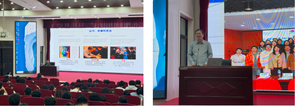 首先,潘传英教授介绍了近十年参与科普宣讲及组织中国细胞生物学会“诺贝尔生理学或医学奖解读”活动的情况。然后,潘传英教授详细介绍了诺贝尔奖的由来、颁奖机构和评选流程等,以及2015至2024年间诺贝尔生理学或医学奖的获奖情况,勉励同学们在面对科学难题时要勇于挑战、勤于思考、积极合作。此外,潘传英教授通过“搞笑诺贝尔奖”的趣味案例,引导同学们在“笑中思,笑中悟”,保持对未知世界的好奇心和探索精神。